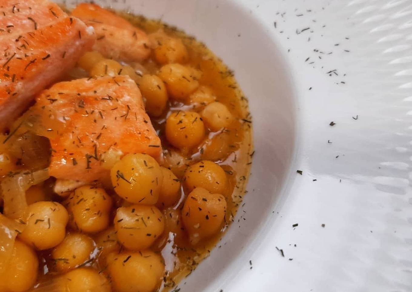 Hey everyone, I hope you are having an incredible day today. Today, I will show you a way to prepare a distinctive dish, Garbanzos estofados al curry con salmón. One of my favorites. For mine, I'm gonna make it a little bit tasty. This will be really delicious.