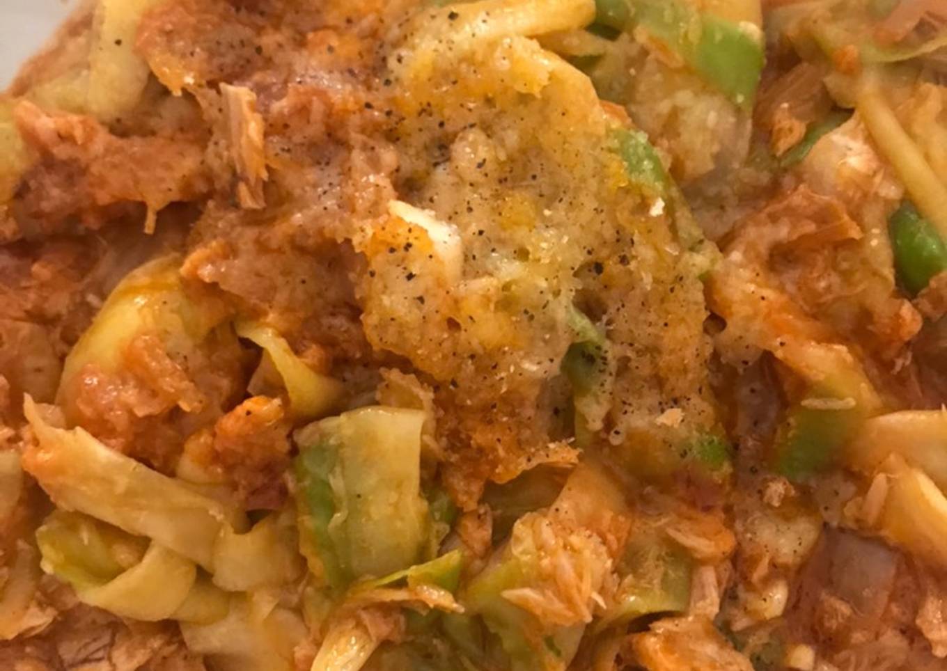 Espaguetis de calabacín con sofrito de atún y tomate