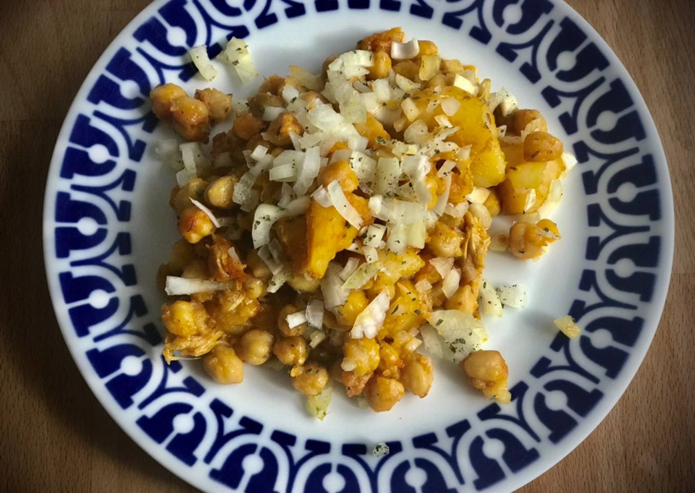 El Chana Masala o garbanzos al curry es un plato vegetariano muy nutritivo originario de Punjab, norte de la India.