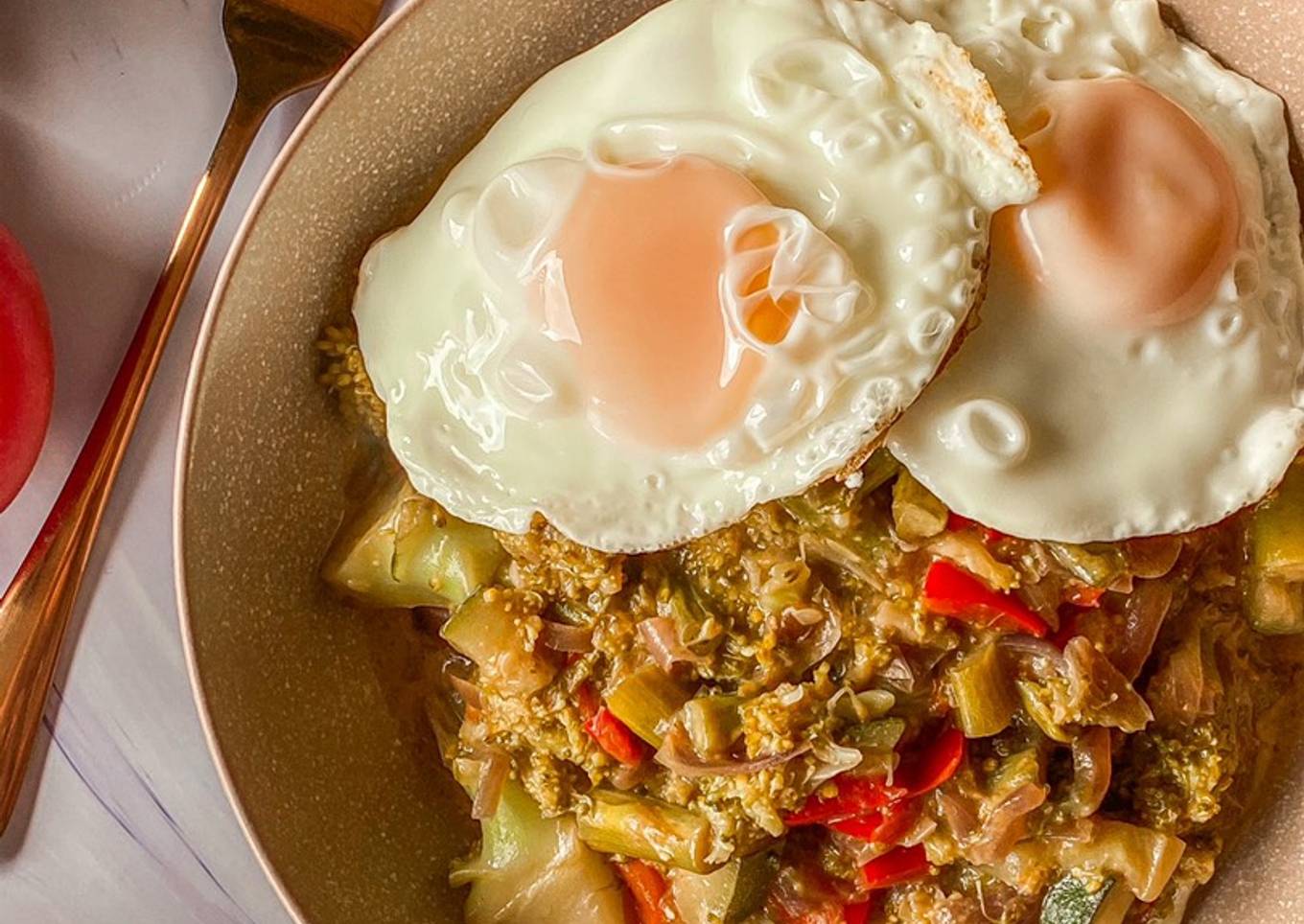 Curry de verduras con huevo a la plancha
