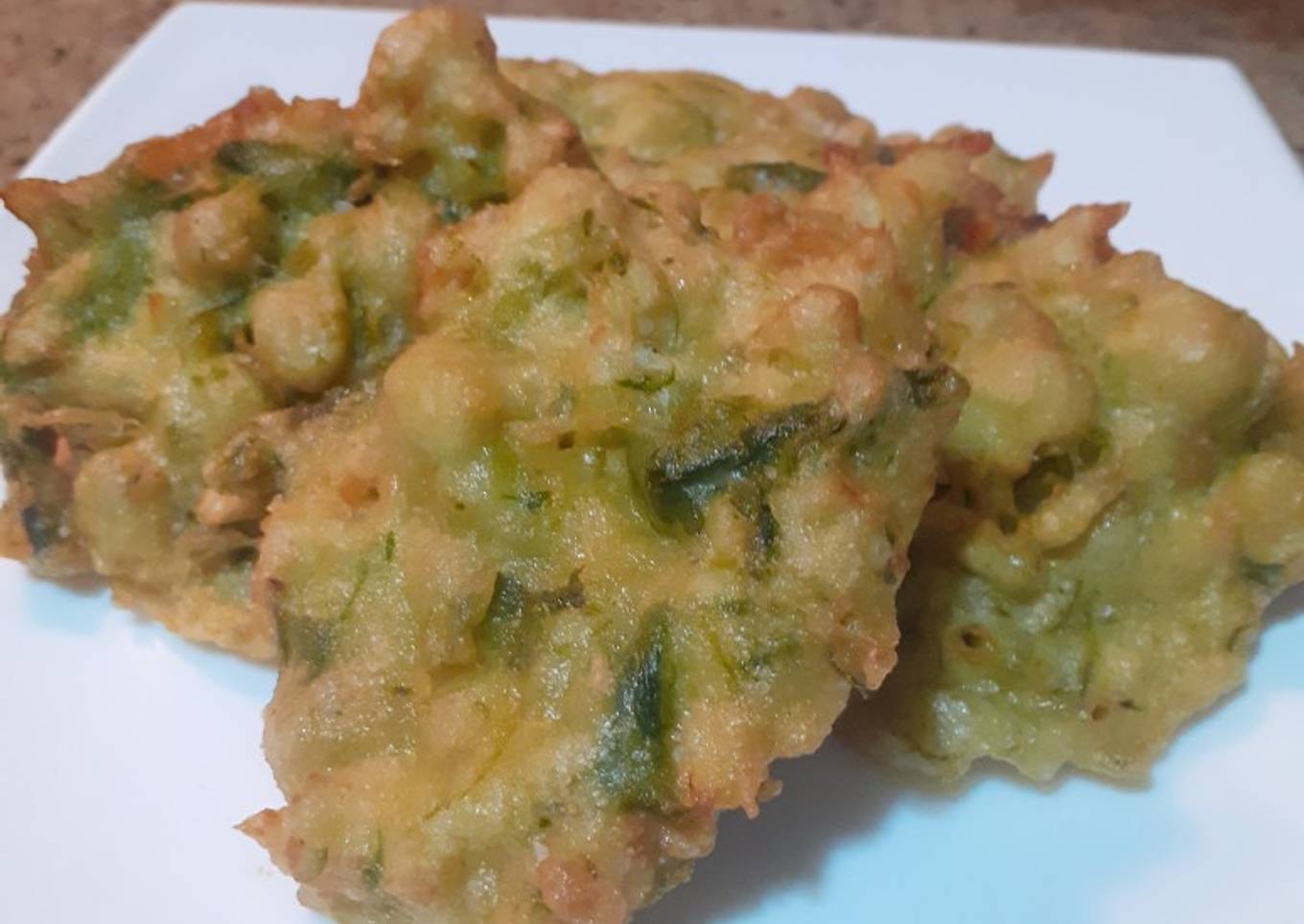 - En una sartén con abundante aceite con ayuda de una cuchara las vamos añadiendo a la sartén formando tortitas, las sacamos en un plato con papel absorbente y listo. Quedan buenísimas!!