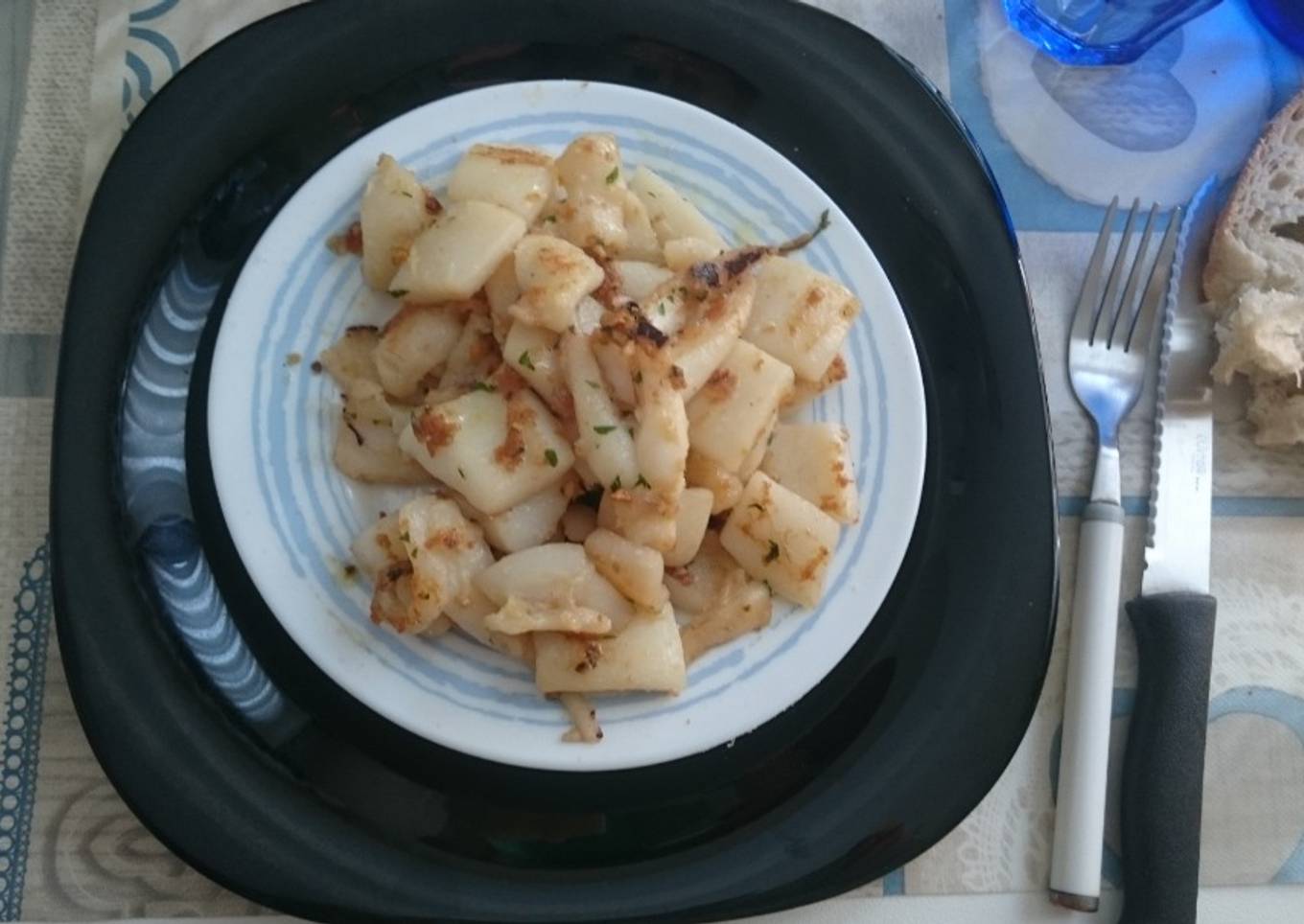 - Se añade sal y se pincela con los ajos, perejil y AOVE, se va moviendo un par de minutos y ya está lista para comer.