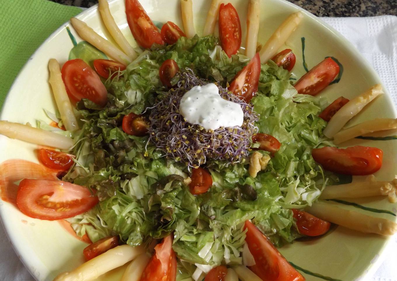 - Colocar en el centro los brotes y servir acompañada con la salsa.